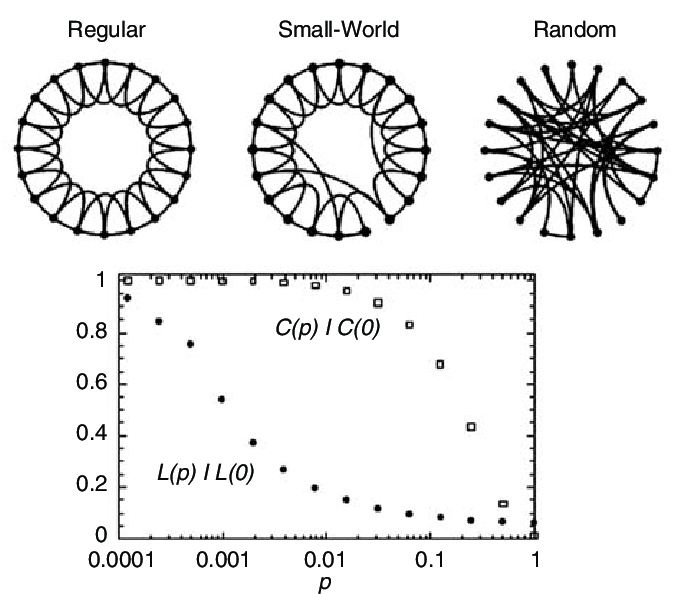 Small-world networks are networks that have both high clustering coefficient and short average path length.