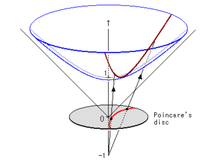 Key property: In this space, the rule “minimize s \cdot \theta_{st}” is mathematically equivalent to connecting to the mhyperbolically closest nodes.