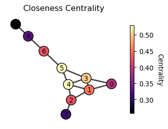 Closeness centrality measures how close a node is to all other nodes in the network. A node is central if it is close to all other nodes, which is operationally defined as