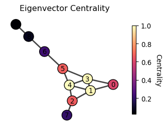 Eigenvector centrality considers that a node is important if it is connected to other important nodes. Yes, it sounds like circular! But it is actually computable! Let us define it more precisely by the following equation.