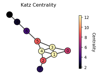 Katz centrality addresses a limitation of eigenvector centrality, which tends to pay too much attention to a small number of nodes that are well connected to the network while under-emphasizing the importance of the rest of the nodes. The solution is to add a little bit of score to all nodes.