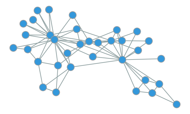 Let’s see it in action on the Zachary Karate Club, a famous social network of 34 members of a karate club that eventually split into two factions.