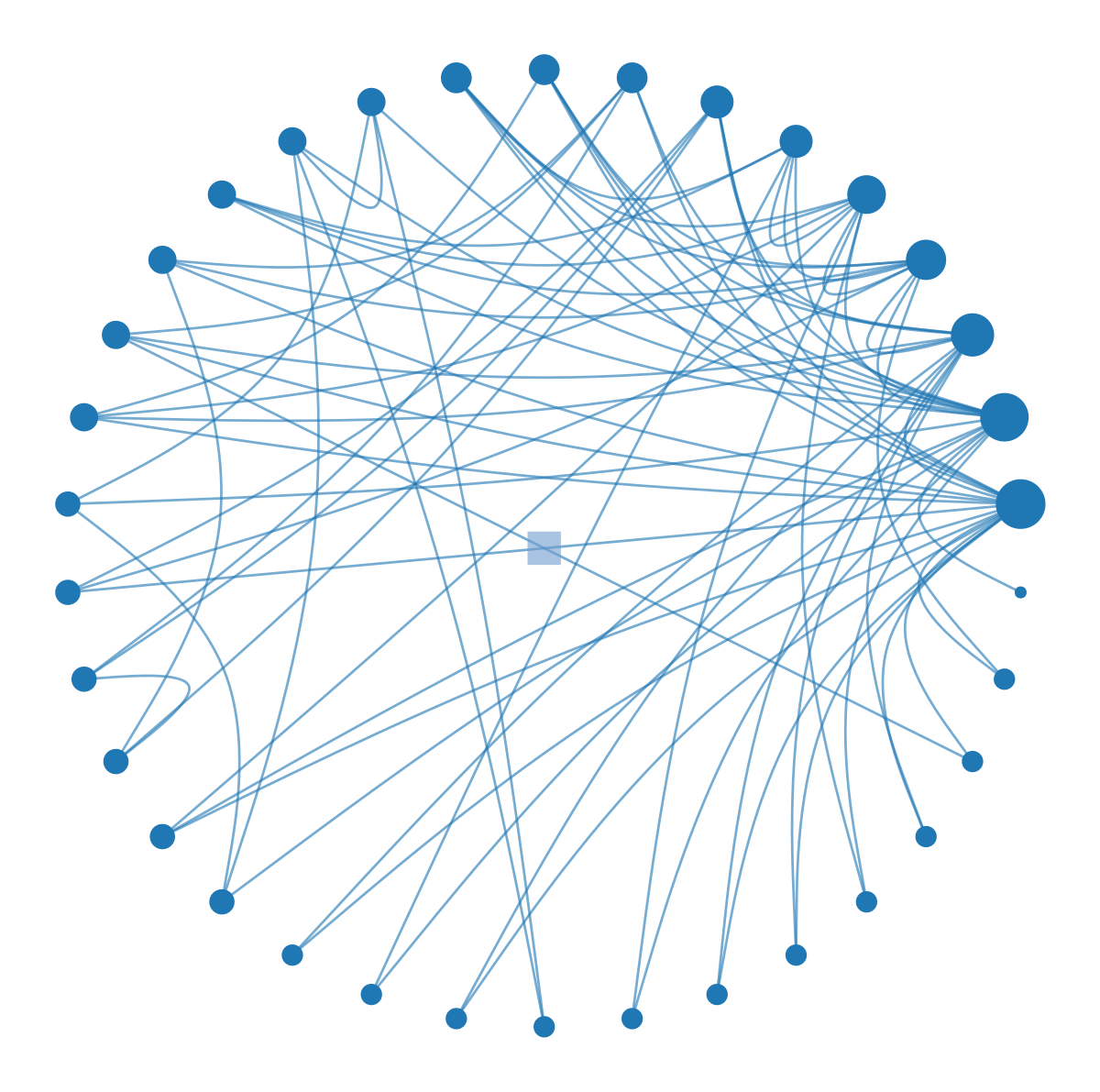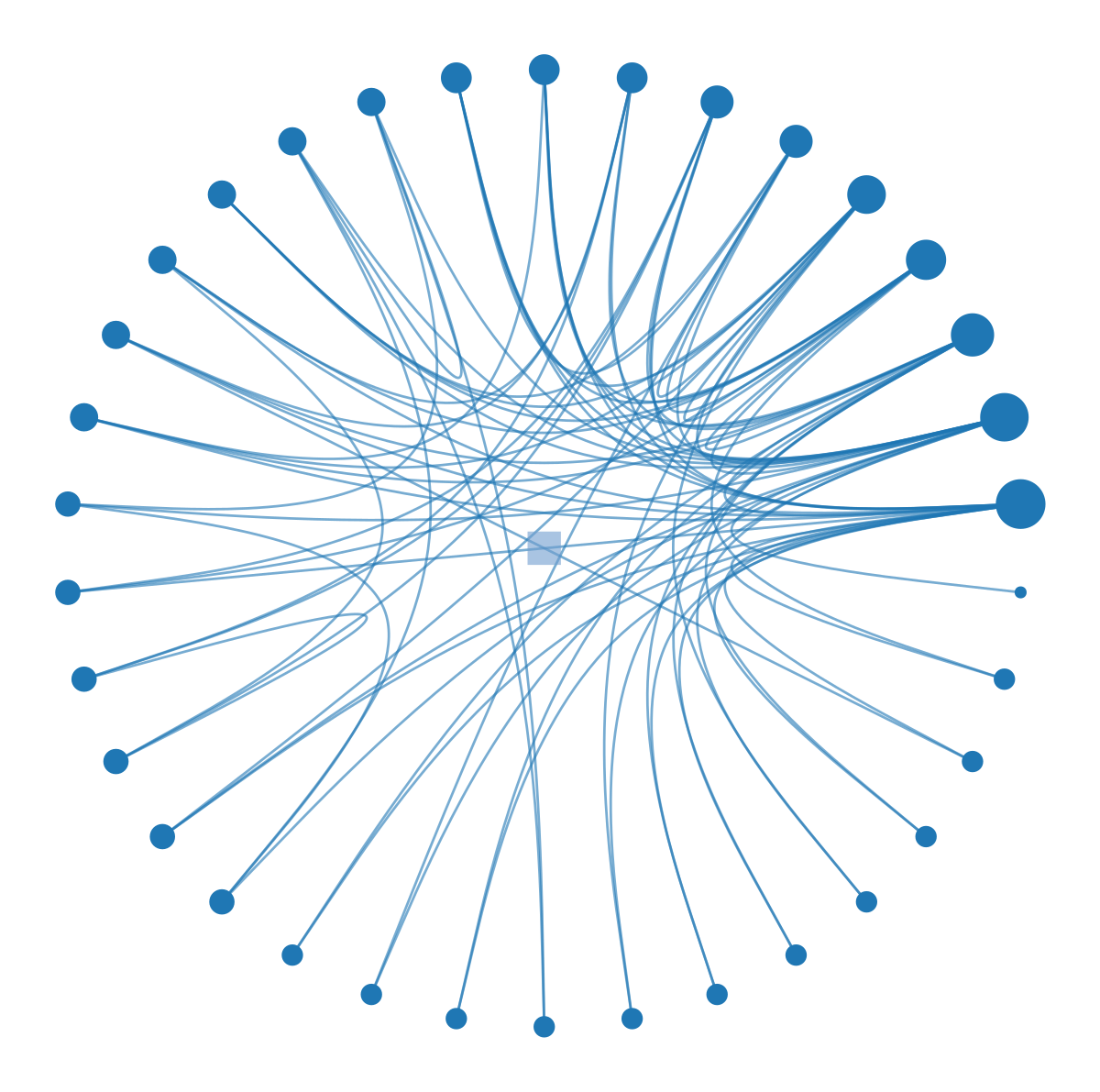 This visualization packs an enormous amount of information into a single image. The concentric rings represent levels of the hierarchy, from coarse inner groups to fine outer details. The colored wedges visually separate different communities. Most importantly, edge bundling acts as a visual compressor. By routing edges through the hierarchy tree, it creates bundled “highways” that reveal large-scale connectivity patterns.