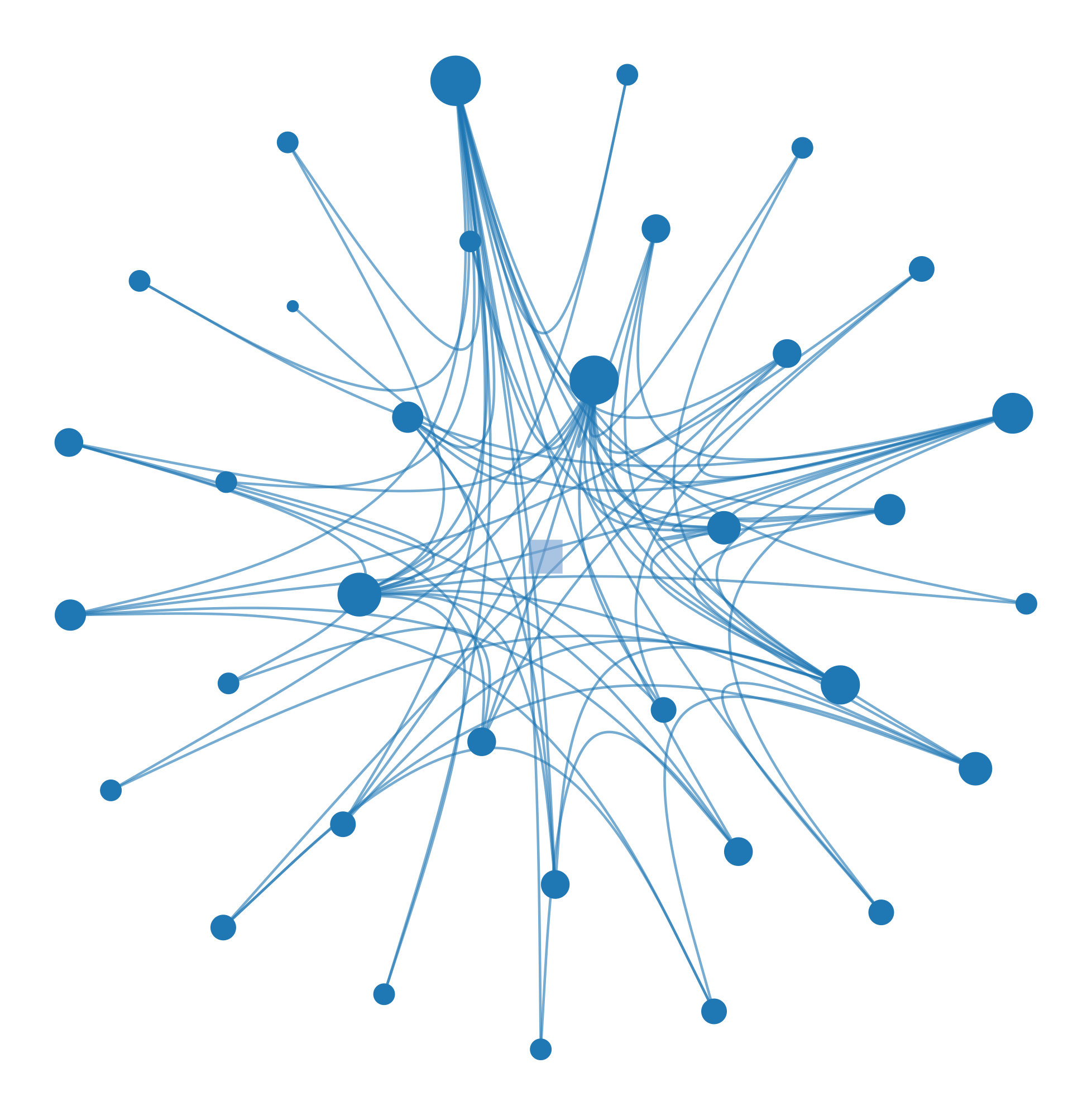 import graph_tool.allas gtimport matplotlib.pyplot as plt# Load C. elegans neural networkg = gt.collection.data["celegansneural"]# Infer hierarchical community structurestate = gt.minimize_nested_blockmodel_dl(g)# Draw hierarchy with edge bundlinggt.draw_hierarchy(state, beta=0.8, # Edge bundling strength output_size=(1200, 1200), inline=True)