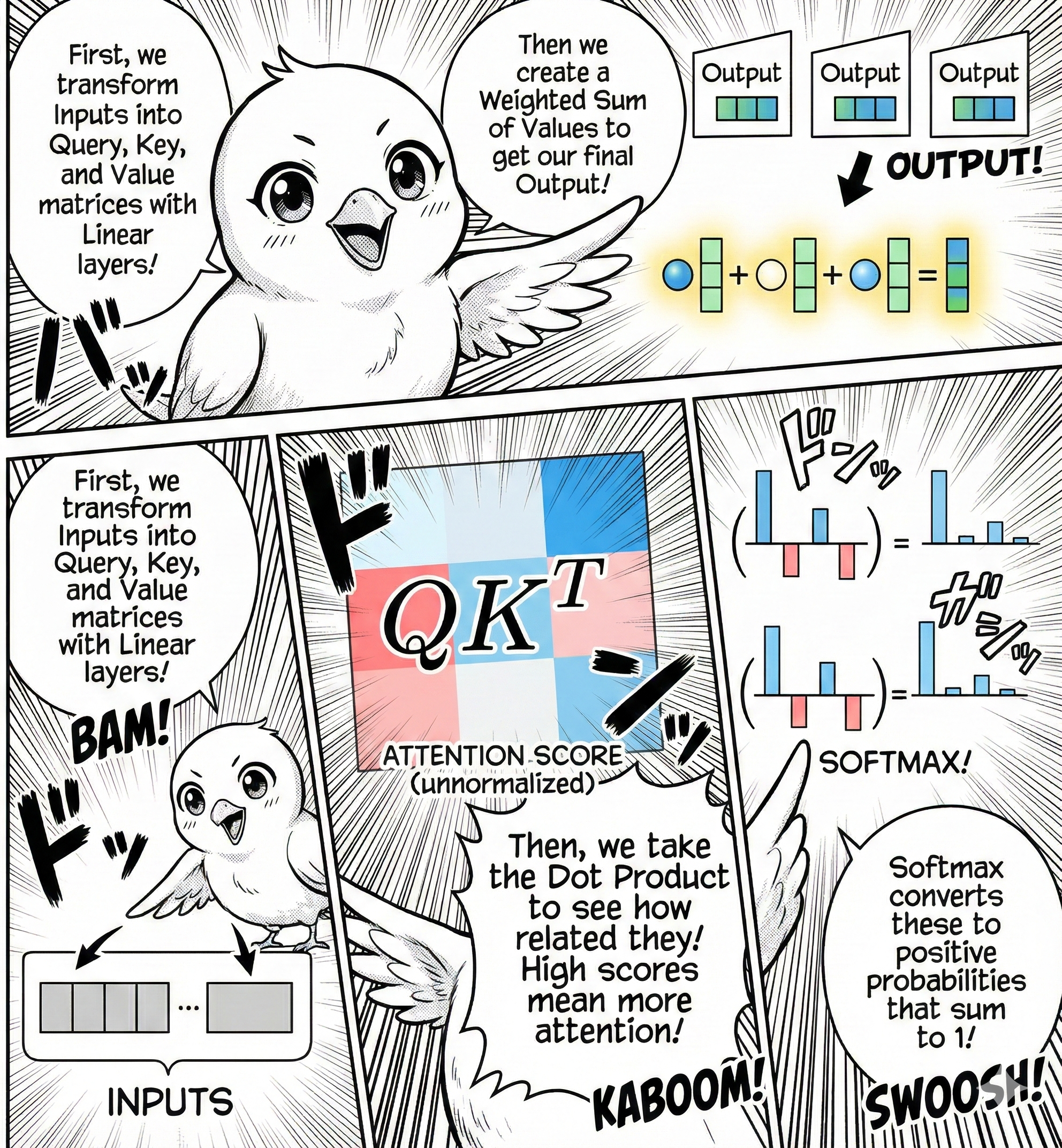- How attention mechanisms compute context-aware representations through weighted mixing.