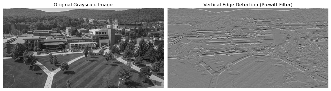 axes[1].set_title("Vertical Edge Detection (Prewitt Filter)")